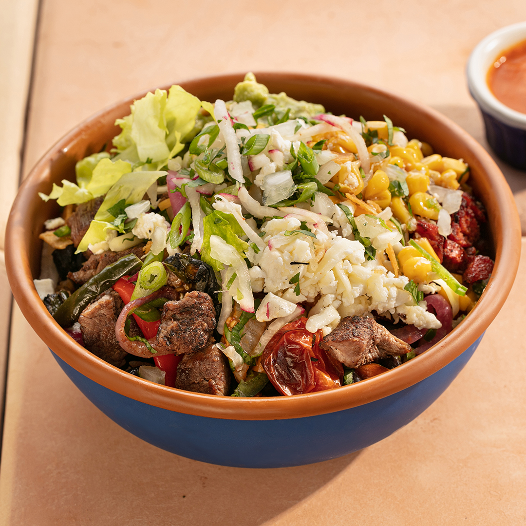 Your choice of freshly grilled protein served in a delicious bowl with rice, beans, sauces and toppings.